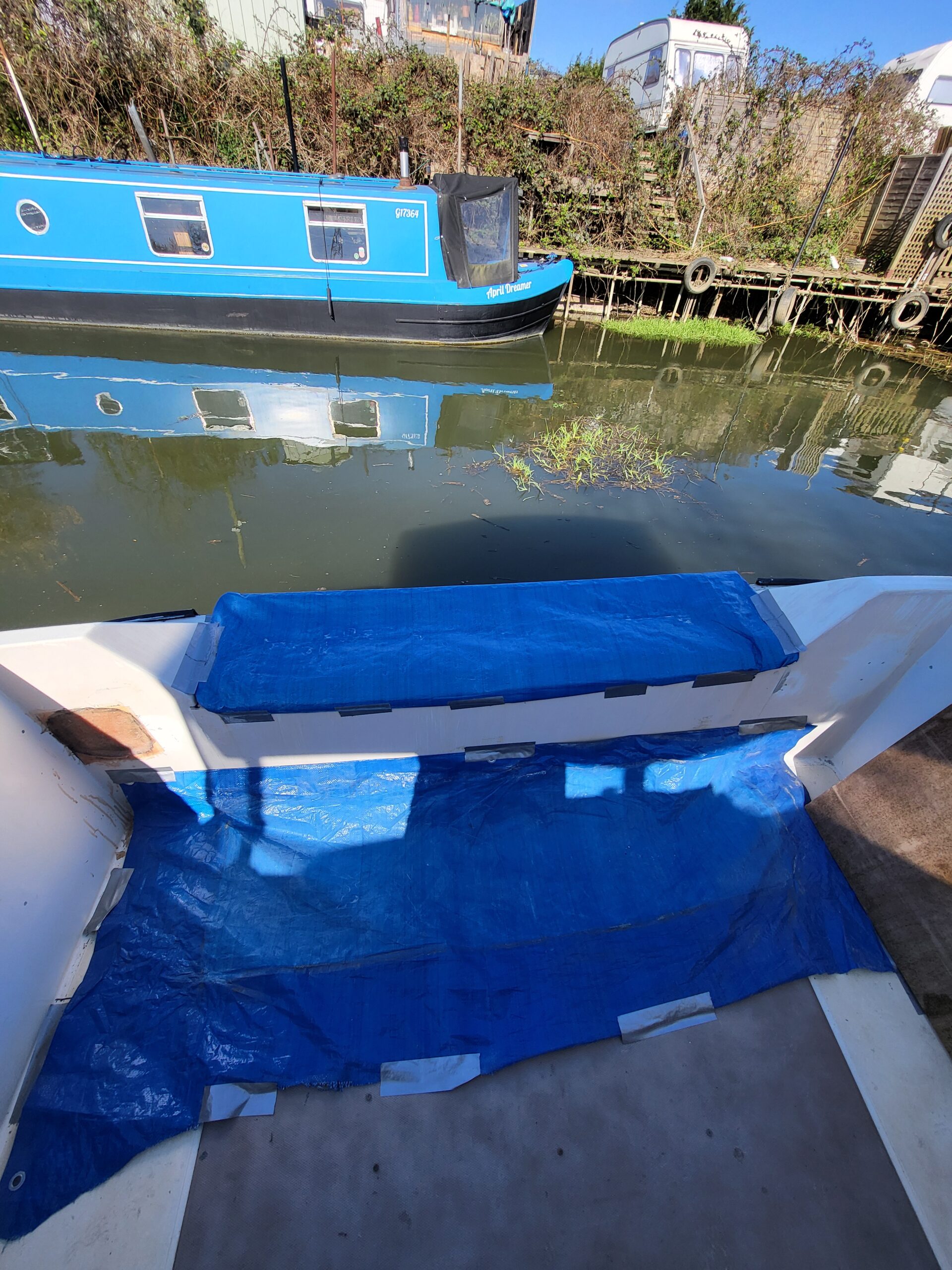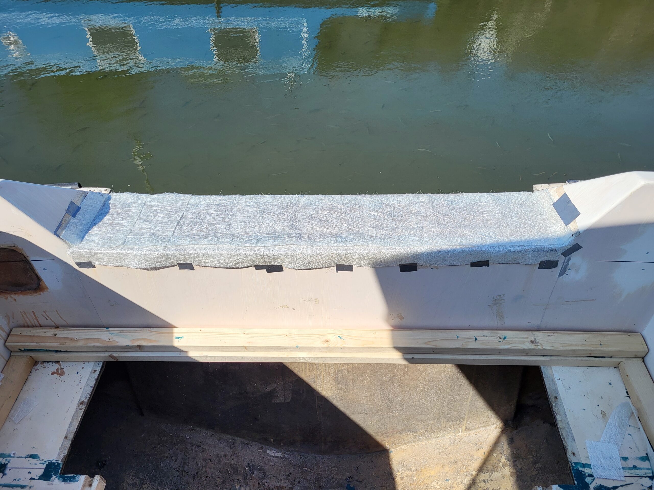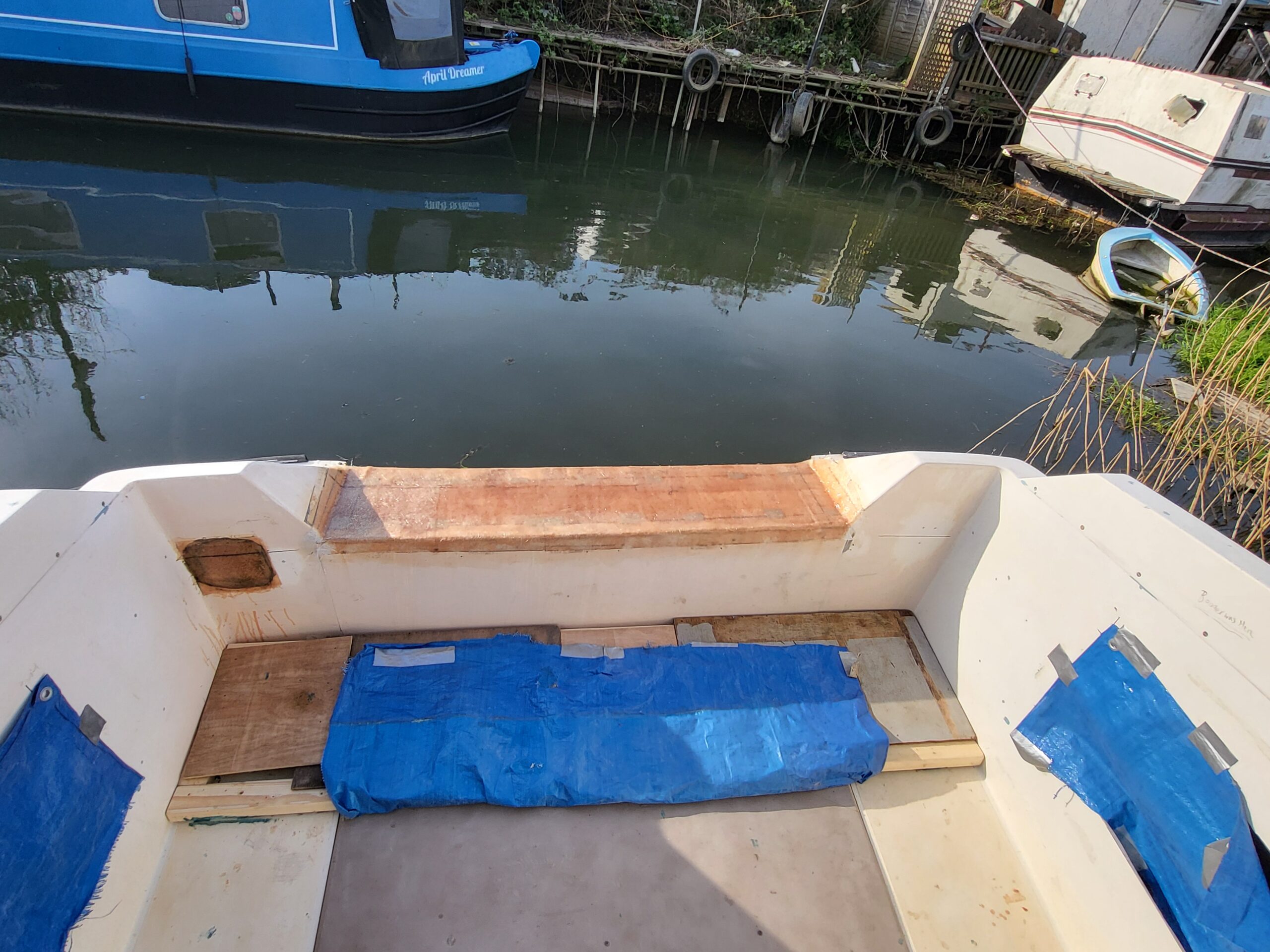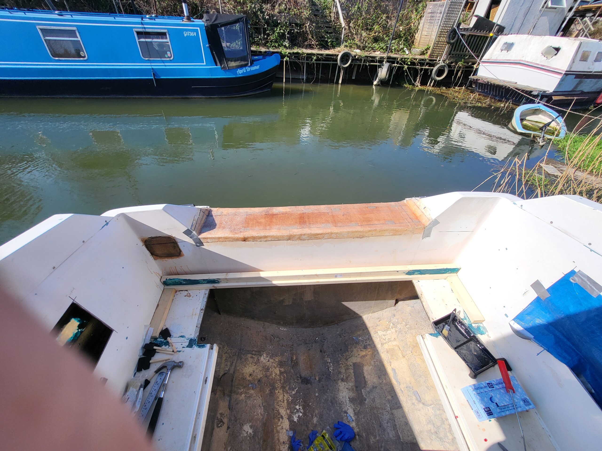 Spring was springing, there was a renewed enthusiasm for working on the boat. Not that I’d lost any enthusiasm mind you, but winter was cold, dark, very wet and depressing. The decision was made to finally try and repair some of the biggest issues on the boat, of which there were many. I’d been avoiding them like the plague, mainly because it involved using actual fibreglass and not just fibreglass filler. As it turned out, I did a pretty decent job of the transom. By Beasty standards anyway.