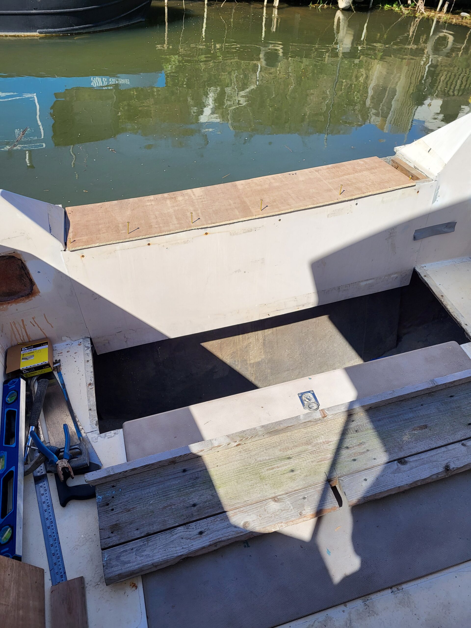 When I first bought the boat, I hadn’t realised how damaged it actually was. Shock. Horror. More specifically, the previous owner had unfathomably cut away the top of the transom, and had increased the size of the engine bay entrance, among other inexplicable holes around the boat which I wrote about here.
