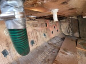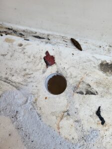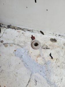 The goal today was to move that drainage hole by drilling a new hole in the floor and then attaching waste pies to the new hole and then filling in the old hole. The new hole is temporary only.  This was my progress through the day: