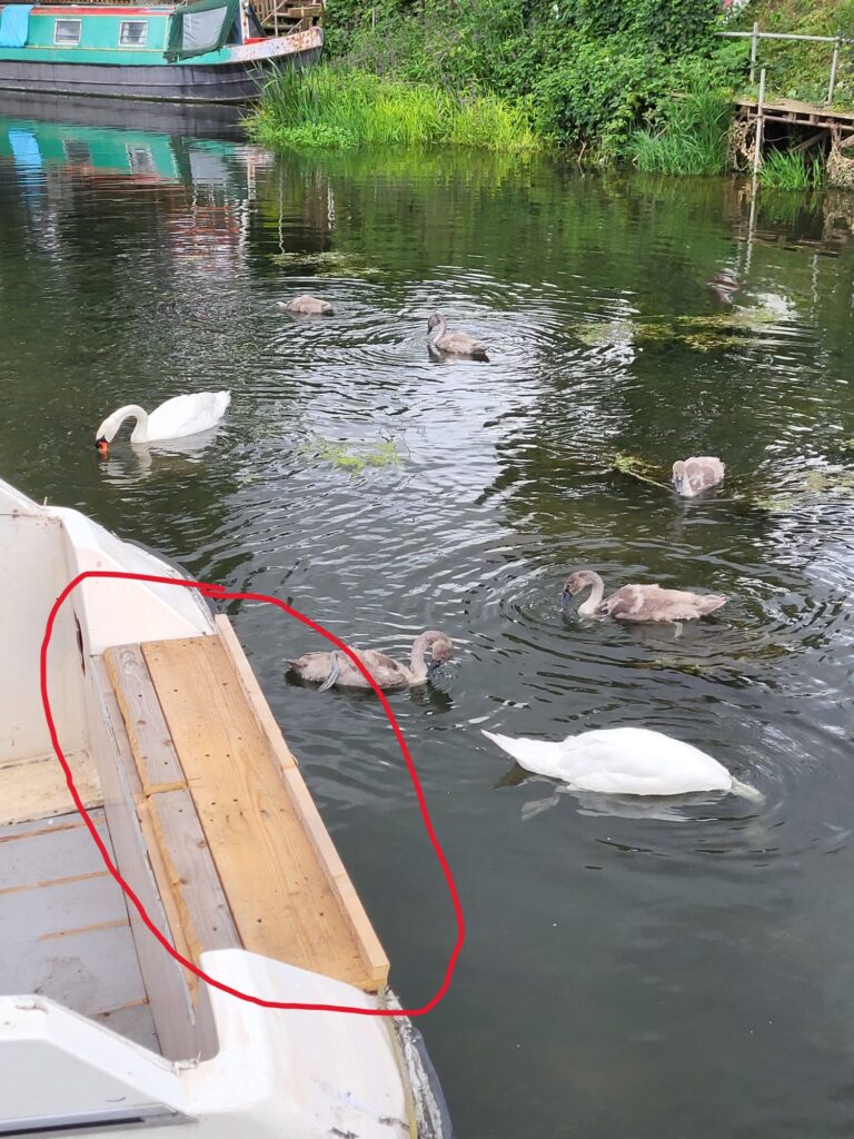 Cock Slot – The previous owner, for reasons unknown has sliced off the top of the transom. I’m guessing it was so he could attach the god awful shed to the cockpit. It’s important that this repair is done to a very high standard (so not by me). The reason for this is because at some point an outboard will be attached here, so the transom needs to be structurally sound. Look at the cute swans and swanlings swanlets baby swans cygnets on the water. Aren’t they cute? Incidentally have you ever seen the size of swan shit? It’s fucking massive!
