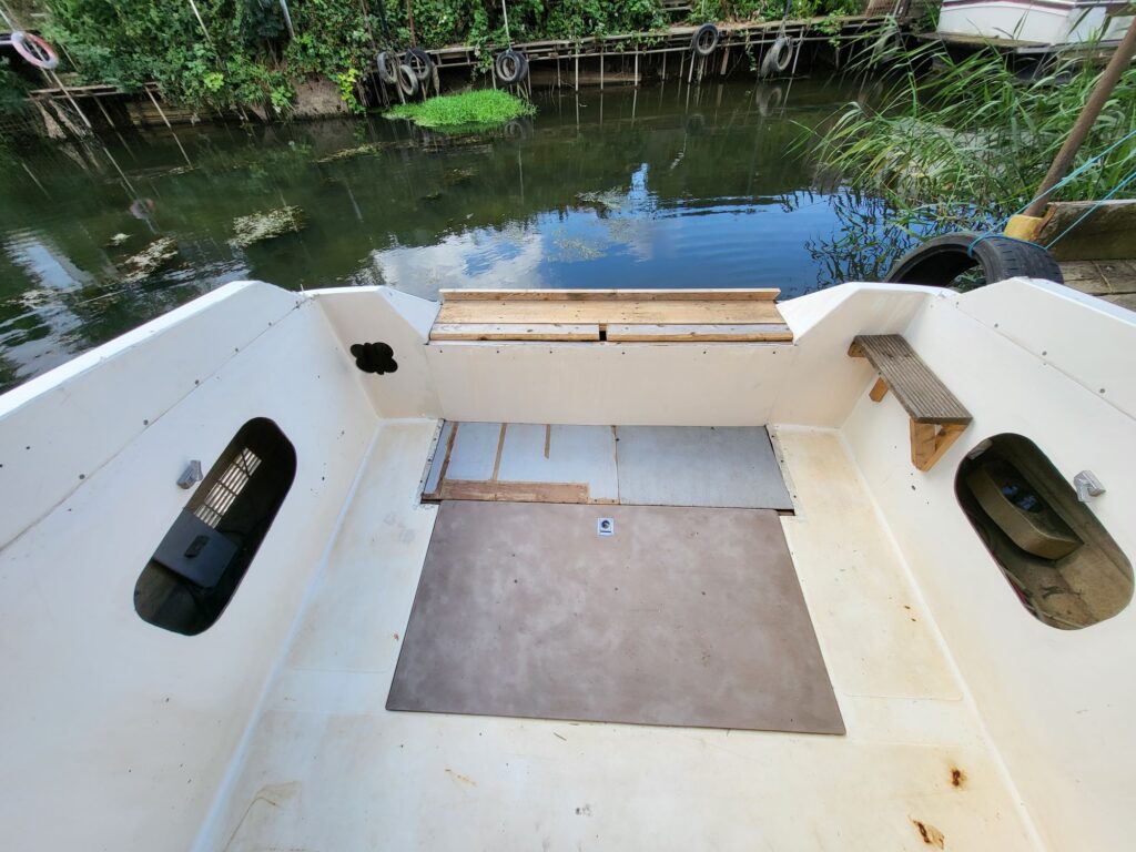 - Emptied the boat of water numerous times – You may have noticed in some of the pictures there are some gaping holes that the previous owner has cut out for some reason or another and these have allowed rain water to accumulate inside the boat. For the most part the water is coming in from the transom and a gaping hole that the previous owner has cut in the cockpit floor to expand the size of the engine bay. It’s only in the last week or so that Zed has suggested using tarpaulins to cover these holes. Why did I not think of that at the time?