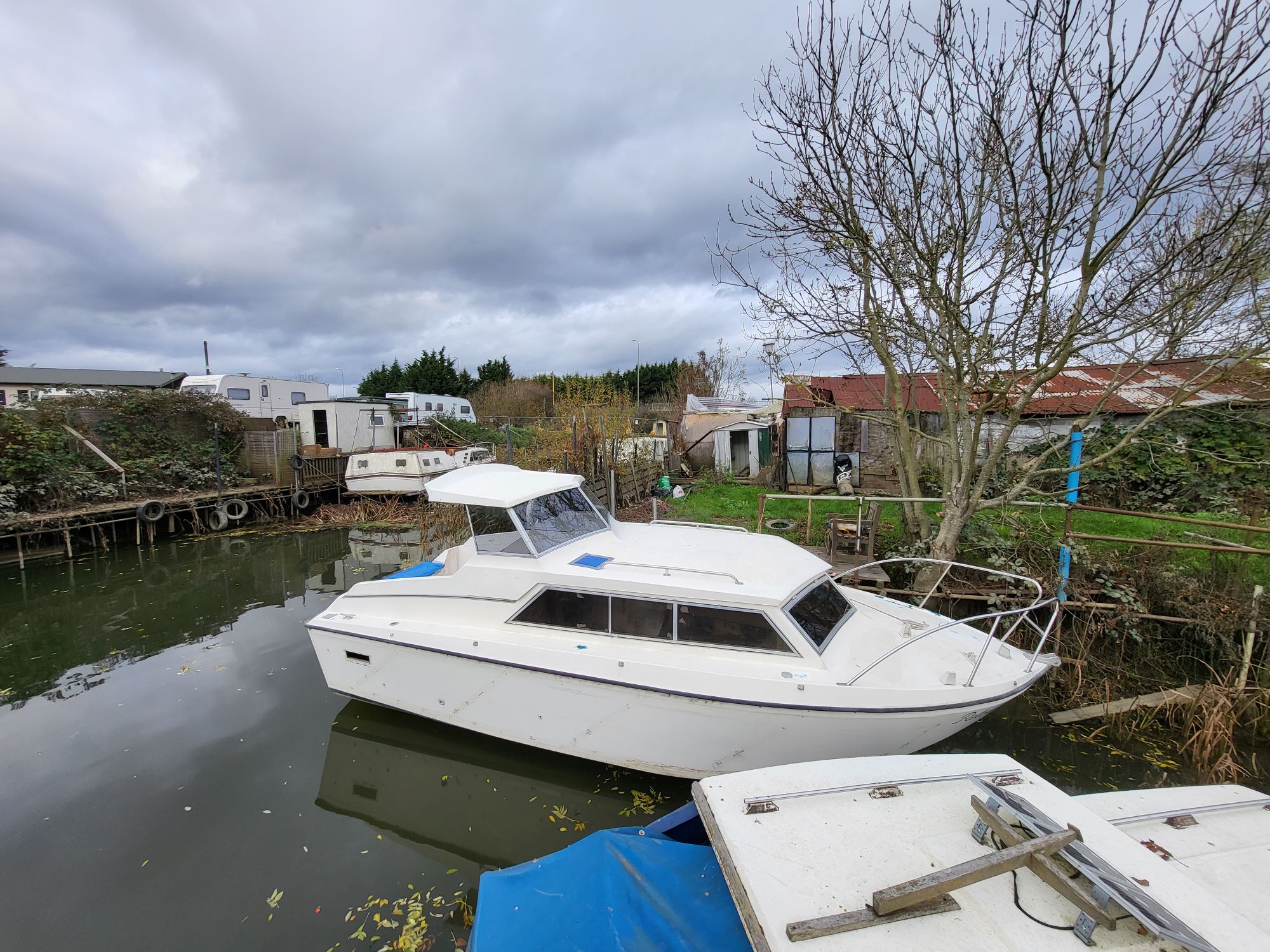 - There is one area of concern, massive concern. And I’m hoping there’s an easy/cheap solution to it but I doubt it. When walking on the bow, the port side part of the bow is very spongy/flexible wheras the starboar side is very firm. I suspect that the fibreglass has weakened due to water ingress. I don’t want to think about it too much right now or I will get distracted, or worse, I may try fixing it. My initial instinct is to cut it out and replace it, which will end in a wolrd of shit. Perhaps with all the holes sealed it may dry out. I doubt that’ll allow it to firm up again though. We’ll see. For a boat that’s never actually been on water until now, it sure does have a lot of water damage.