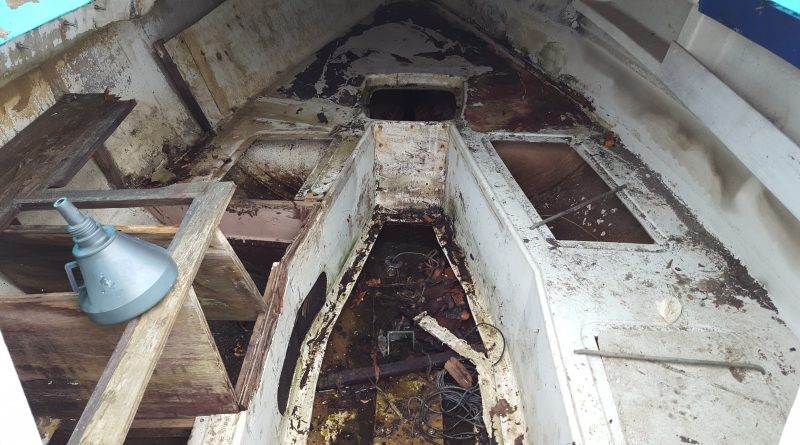 Exhibit A of course is the featured image. Hardly an attractive start to our relationship together. This picture was taken whilst the boat was still in Southampton. On one of my many visits to her new home I decided that the only way to get her on the straight and narrow was to rip her insides out. It was a decision taken after I had ripped the wooden trim that encompassed her. Acting as a quasi-gastric belt I decided her metamorphosis into a beautiful butterfly could do without artificial aids.