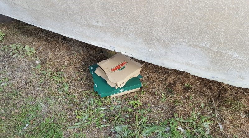 Before I add pictures, this is where I got the idea for the blog title. You see I knew I’d be doing some filling this weekend. More specifically plugging all the drilled holes along the top of the hull. It pretty much looks like Don Juan got drunk and horny and tapped the boat as many times as he could. I also entertained the idea of actually doing some real fibreglassing. I was going to cover over spinny hole and drainage holes. I didn’t quite get there. In all the good YouTube videos when boat wankers patch big holes in their hulls they use some sort of backing so the fibreglass doesn’t sag into the hole. This week I’ve pretty much had pizza take-away every night. Been too lazy to cook. Anyway I salvaged the boxes from the recycling bin and took them with me to the boat in the hopes they’d come in handy. They did.