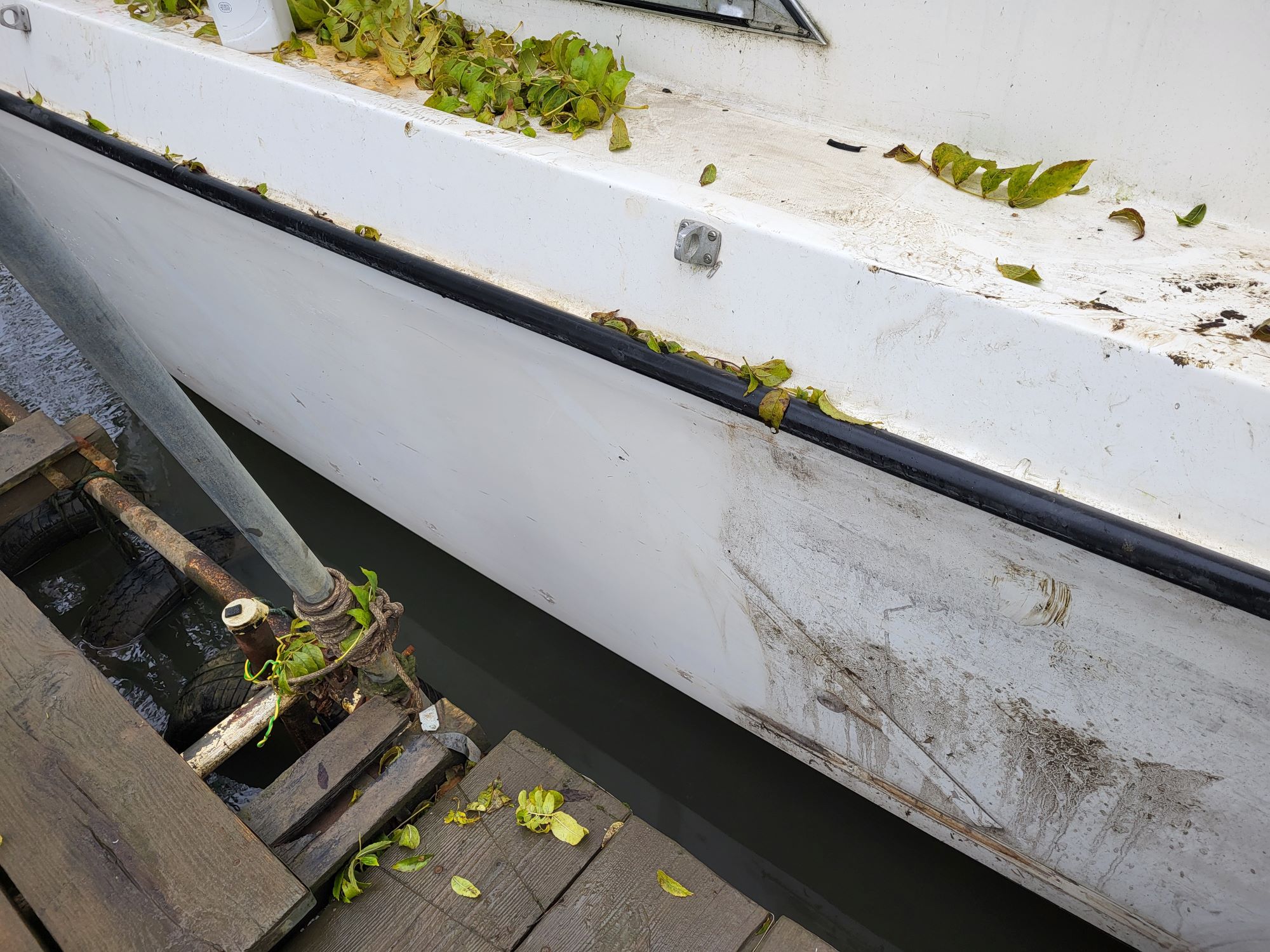 The to-do list from yesterday included washing the boat. Well, I didn’t get the whole boat done, just most of the hull. I say most of the hull, I cleaned all of port side, the transom and about a quarter of starboard side. Most of the starboard side is inaccessible. Unless I manage to acquire the skilll of walking on water. The hull looks a lot better than it was, that’s for sure.
