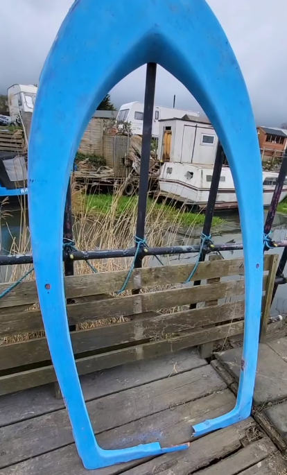 After giving Paint Predator a hard time in my review, it has to be said it actually did speed up the process of stripping the hull cap down to bare bones. Powder/Baby blue is NOT the colour a boat should be. In my humble opinion. It reminds me of the V8 Ford Cortina Station Wagon/Estate my dad owned in the 1980s. That’s where it should stay. Be that as it may I can now start repairing the damage to the cap and then reinforce it, because it’s more flaccid than an octogenarian at a boy band concert.