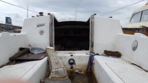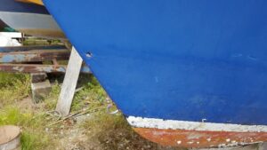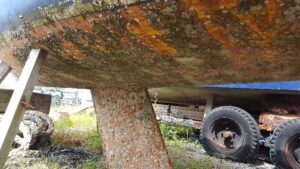 Most of the work that needs to be done on her is cosmetic. A liposuction here, a bit of botox there and she’ll be good to go. There were two main concerns. Firstly she was holding a lot of water which in itself is not a bad thing because it means there are no leaks but would mean a lot of work would need to be done. More importantly though she seemed to have a hole on the hull just above the waterline.
