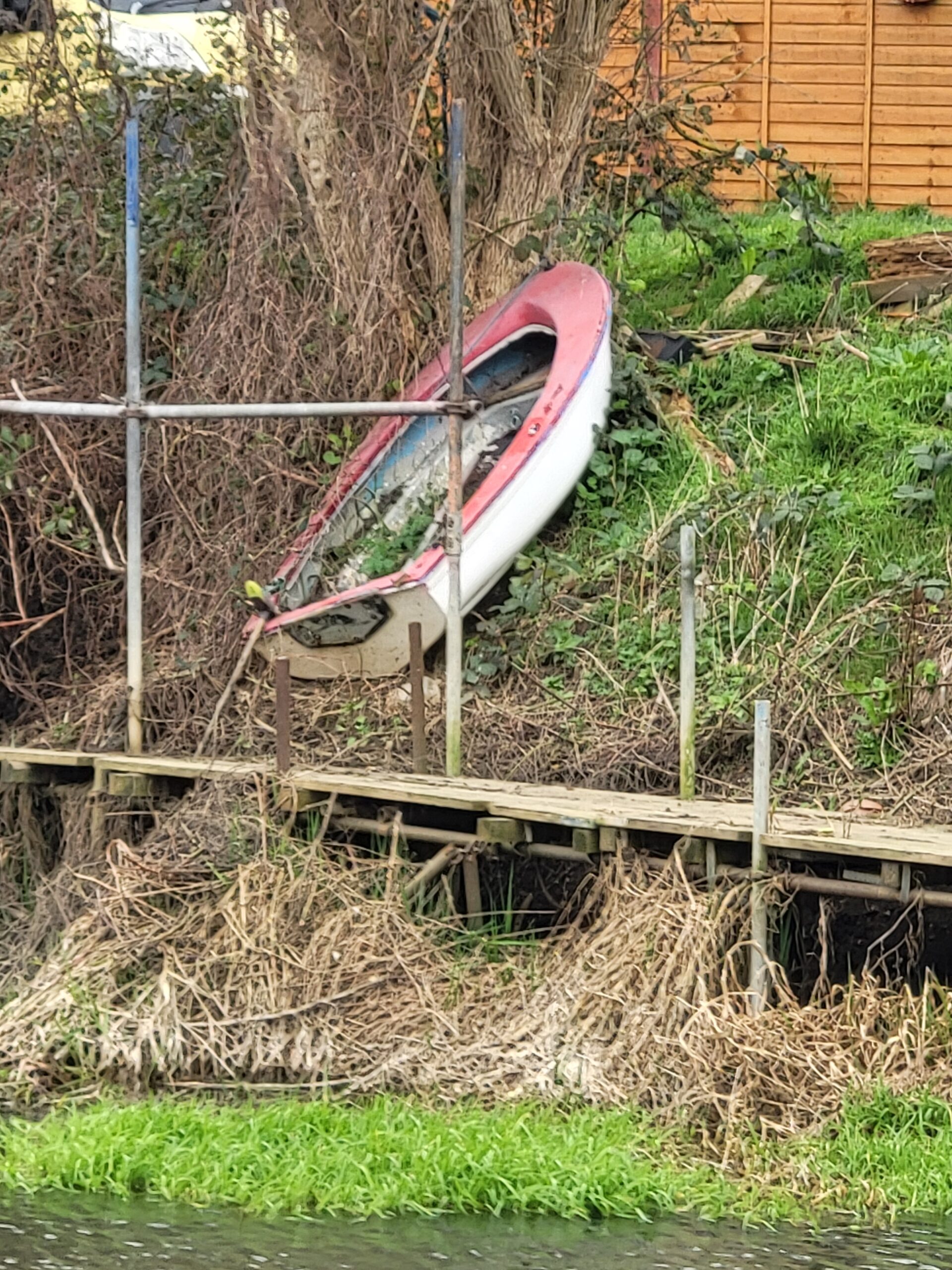 Over the last few weeks whilst working on the boat I noticed a small dinghy laying about on the embankment on the opposite side of the backwater and wondered whether it belonged to anyone. It didn’t look like it. It cut a forlorn and lonely picture, tied to a tree, reeds and weeds growing within it. I took a gamble and asked one of the boatyard staff whether it belonged to anyone. It didn’t. The boatyard said I was welcome to have it if I wanted it. Too fucking right I did! I now have a stable fleet of boats. Aristotle Onassis I am not, maybe a little funnier, perhaps a little younger, even a little poorer but definitely much better looking. Innit?
