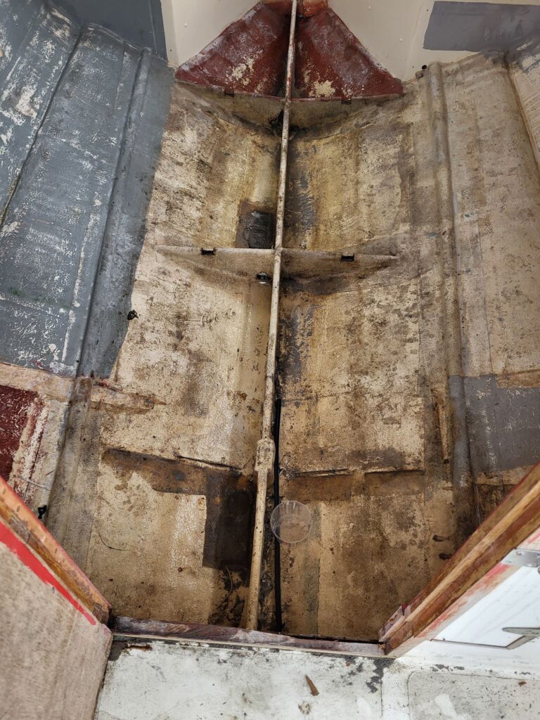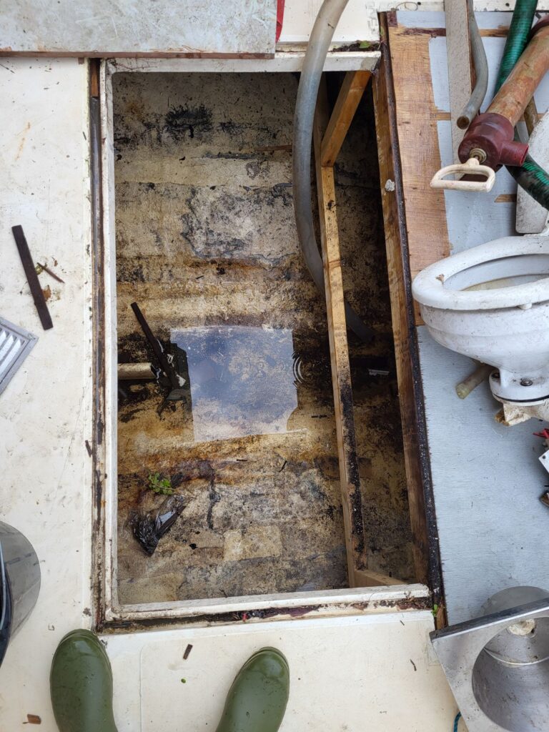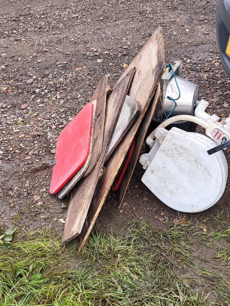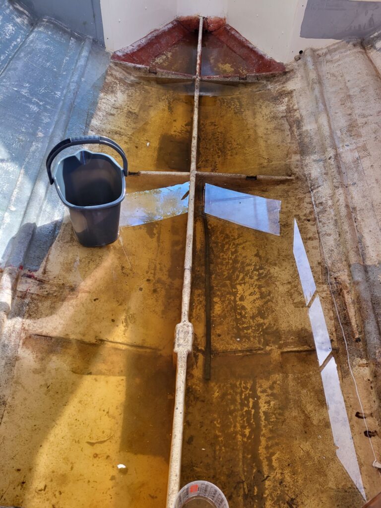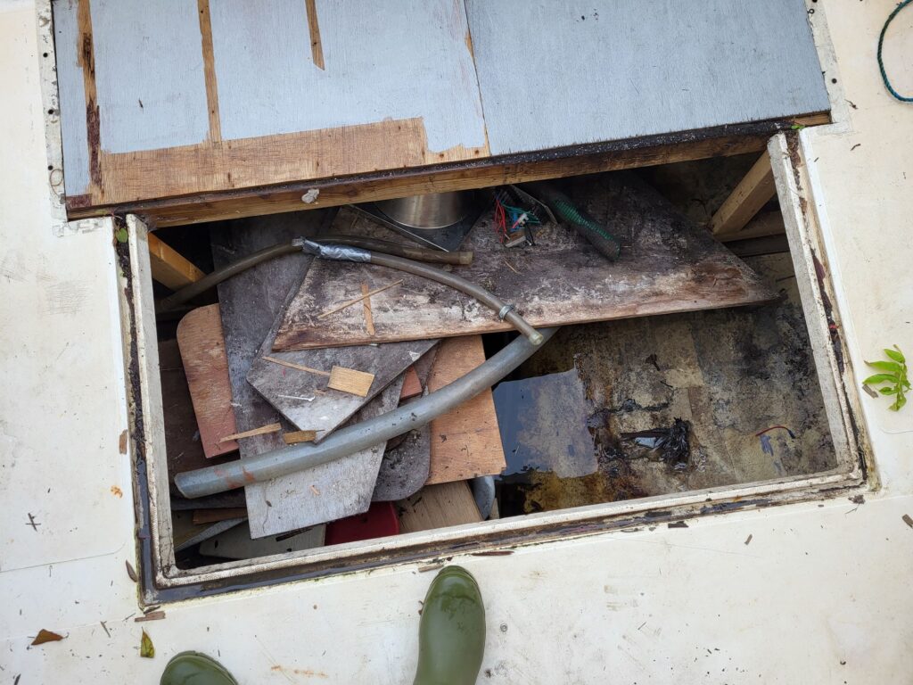 I didn’t spend too long on the boat, I just wanted to assess how much water the boat was holding. Not too much to be fair, but I determined it would take about an hour to hand bail what water was on board. In addition to checking the water level I also wanted to take measurements of all the holes mentioned here.