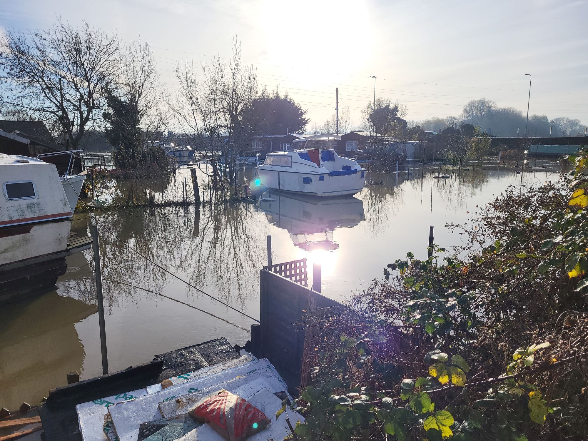 I honestly don’t understand where all the water has come from, because we’ve not had much rain, not locally anyway. It’s quite possible it’s run off from further north, but this much? It’s also not tidal, the boat isn’t on the tidal part of the river, that’s further east. The pictures don’t do the level of flooding any justice. It’s definitely much higher than the last time the boat yard flooded. I knew instantly on my arrrival that I was in shit street because I couldn’t get much further than the entrance road to the yard.